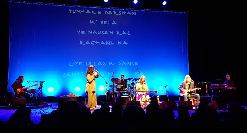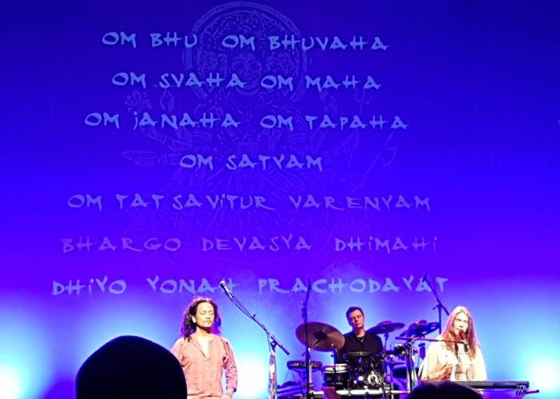 zij organiseert deze concerten en zingt zelf ook mantra's.