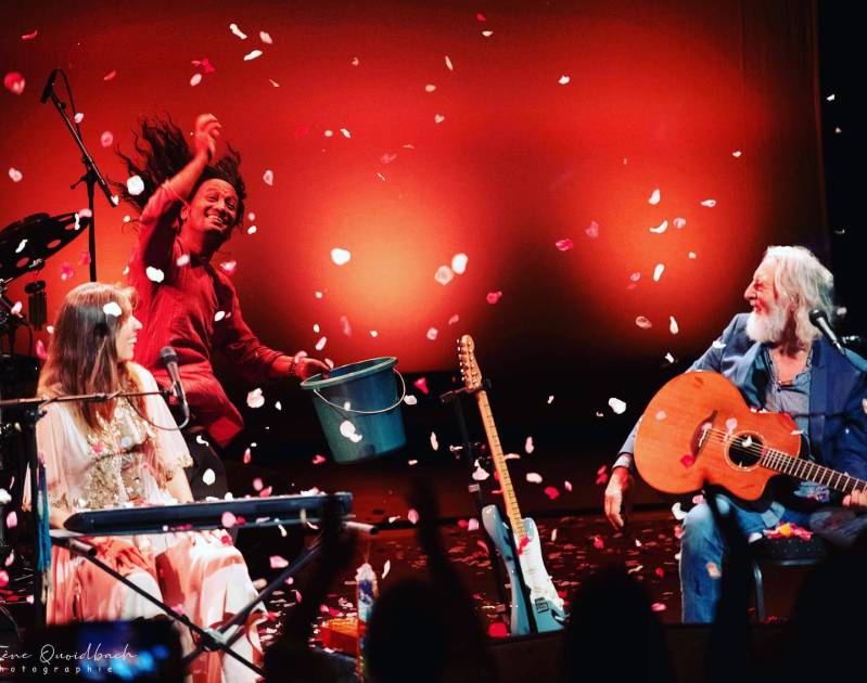 waarbij ze in elk concert iemand van de lokale Sangah uitnodigen om mee te zingen.