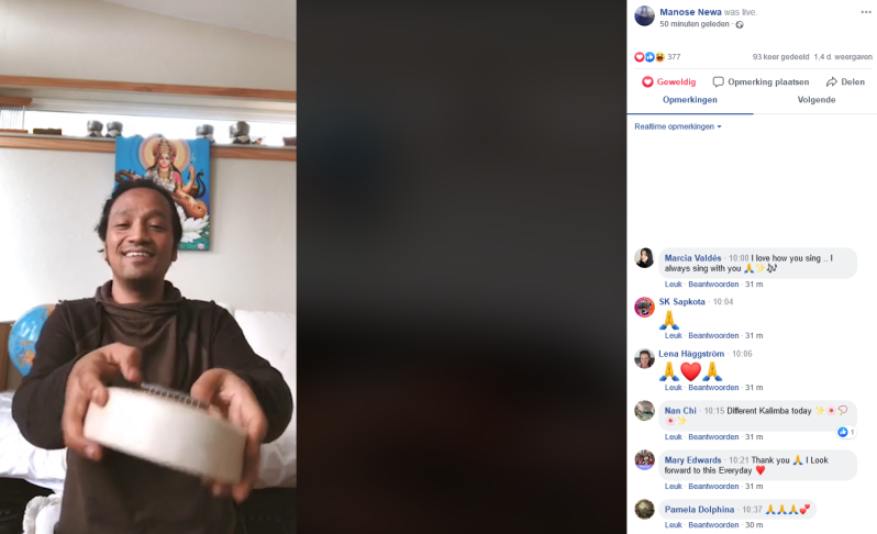 En Manose zingt elke avond om 20:11 u. live de Maha Mrityunjaya Mantra met ons (op facebook).