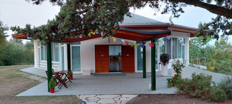 zowel binnen in de Buddha Hall als buiten in "the Egg"