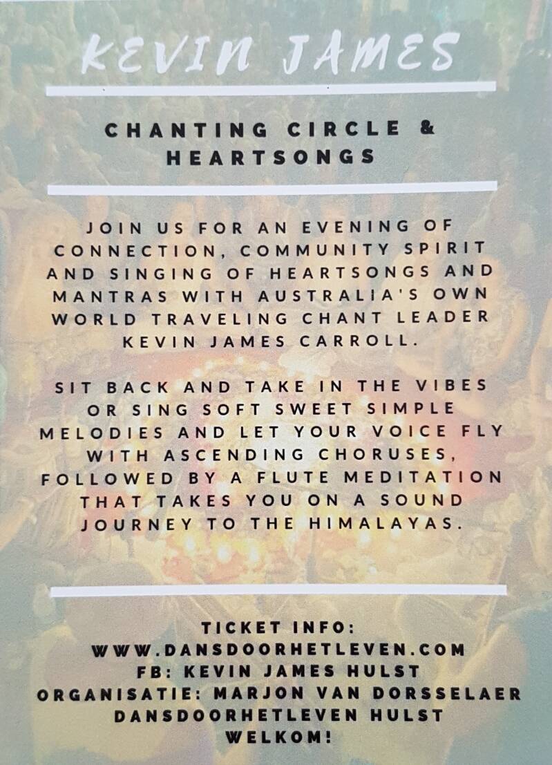 Op deze pagina probeer ik alle mantra's en heartsongs te verzamelen die Kevin James deze avond gezongen heeft.