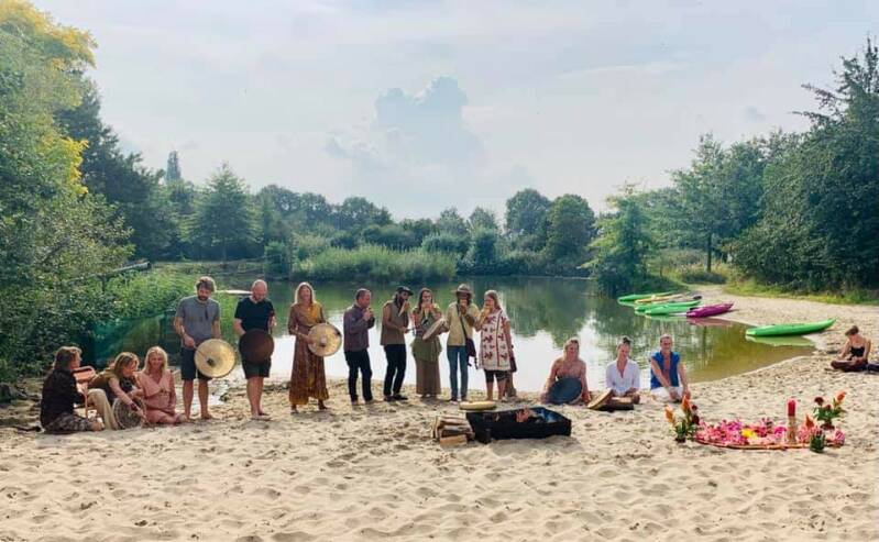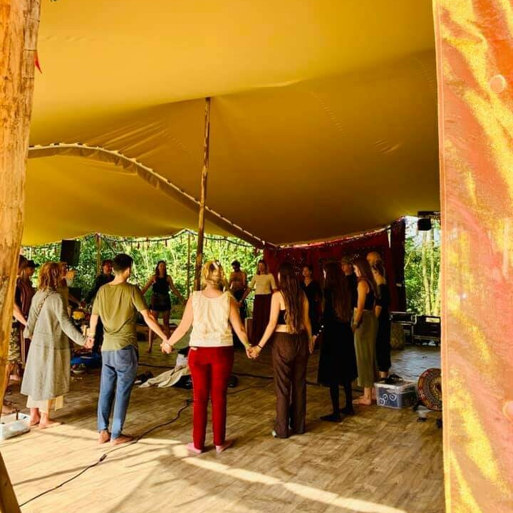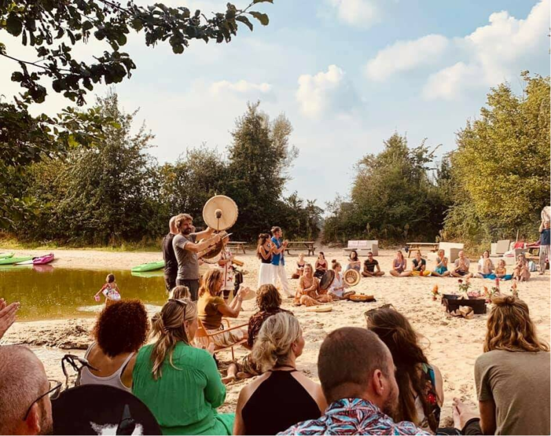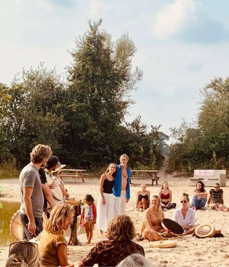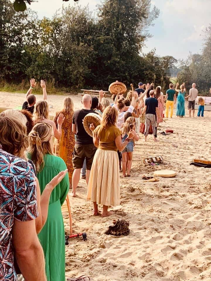 De sluitingsceremonie, waar we onze dankbaarheid en dromen hebben meegegeven aan het vuur en de Sacred Space in de 4 windrichtingen hebben afgesloten.