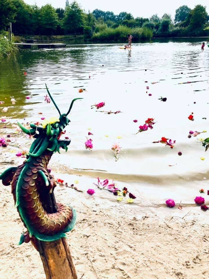 Samen hebben we de bloemen van de hartmandala teruggegeven aan het water.