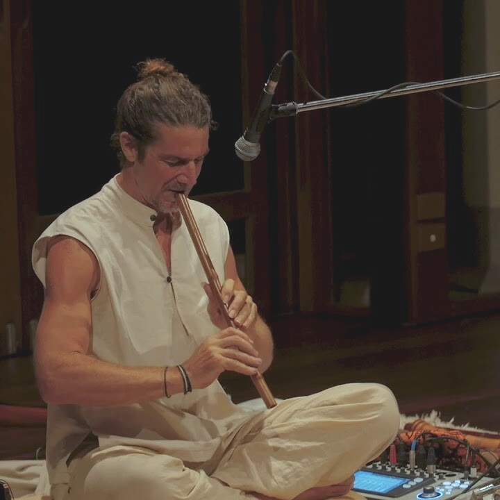 Kevin sloot beide Ecstatic Dances af met een fluitmeditatie.