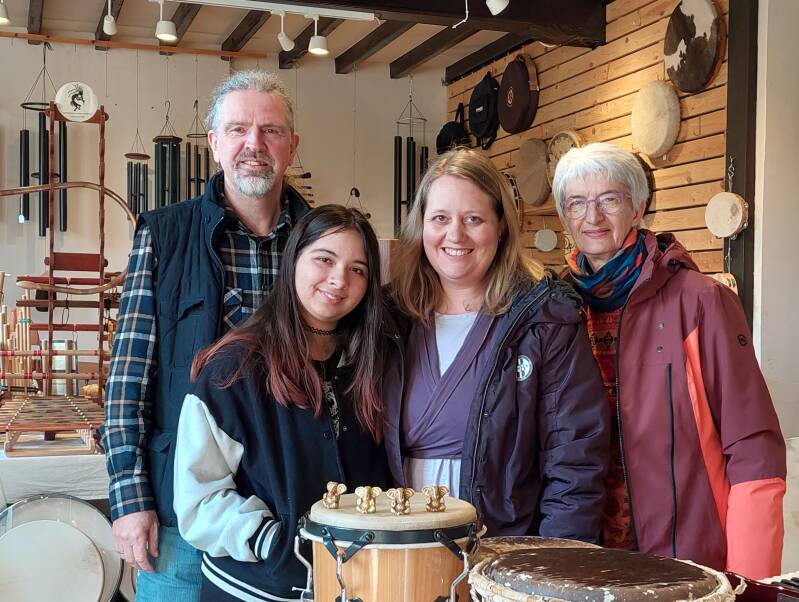 Tina en Emelie, begeleid door Patrik, tijdens de soundcheck voor de chanting circle in Centrum de Kern, Philippine - 27 maart 2024