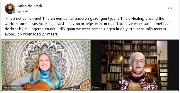 *** Let op *** Er zijn een paar wijzigingen in de data: 24 januari en 7 februari zijn niet doorgegaan vanwege mijn operatie en herstel. Inmiddels ben ik zover dat ik 21 februari weer samen met jullie mantra's kan zingen, we beginnen dan opnieuw met tekstblad 1. 27 maart komen Tina en Emelie / Vali'n'Tina 22 mei komt te vervallen, |